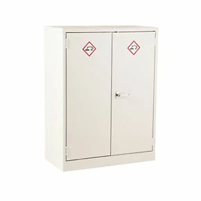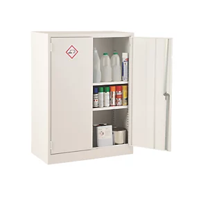 Provides safe storage of acid-based products, flammable liquids, chemicals and paints. Integral, non-removable spillage sump (in the base of the cabinet) to contain minor spills. Reinforced door to prevent distortion and fitted with two-point locking mechanism. Not fire or explosion proof but made to reduce risk to a minimum. Fully adjustable shelves (25mm increments). Shelf clips and warning labels supplied.