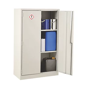 Suits the terms of COSHH regulations by providing safe storage and isolation of various hazardous substances. Integral, non-removable spillage sump (in the base of the cabinet) to contain minor spills. Reinforced door to prevent distortion and fitted with two-point locking mechanism. Fully adjustable shelves (25mm increments). Shelf clips and warning labels supplied.