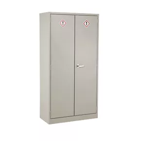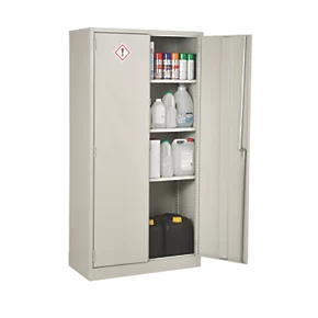 Suits the terms of COSHH regulations by providing safe storage and isolation of various hazardous substances. Integral, non-removable spillage sump (in the base of the cabinet) to contain minor spills. Reinforced door to prevent distortion and fitted with two-point locking mechanism. Fully adjustable shelves (25mm increments). Shelf clips and warning labels supplied.