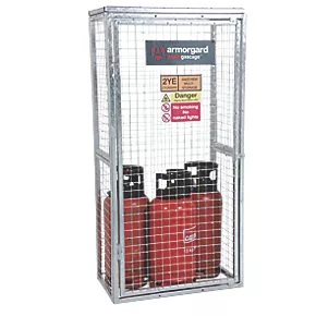 Modular, bolt-together cage for safe storage of gas cylinders. Heavy-duty construction for maximum strength and durability, featuring 25mm box section and 3mm wire mesh and galvanised finish to sustain all weather conditions. Hinged door and padlock facility offers security. Cage can be bolted down to the ground for extra security and stability. Supplied with all fixings and relevant signage regarding gas cylinder storage.