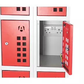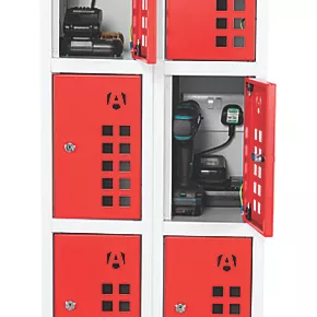 Armorgard PWS10 10-Door Tool & Equipment Storage with Charging Sockets Light Grey with Red Doors
