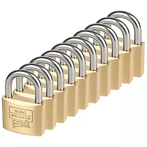 Burg-Wachter Brass Keyed Alike Water-Resistant Padlocks 50mm 10 Pack