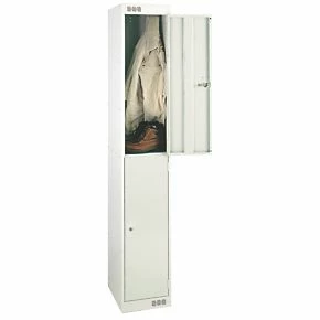 Double door locker providing secure storage for personal items. Pre-assembled, all-steel construction with BioCote anti-bacterial coating, deadlock and 2 keys as standard. Light grey body with grey door.