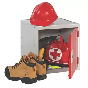 The ideal modular solution to storing personal items. Pre-assembled, all-steel construction with BioCote anti-bacterial coating, deadlock and 2 keys as standard. Can be bolted together. Light grey body with red door.